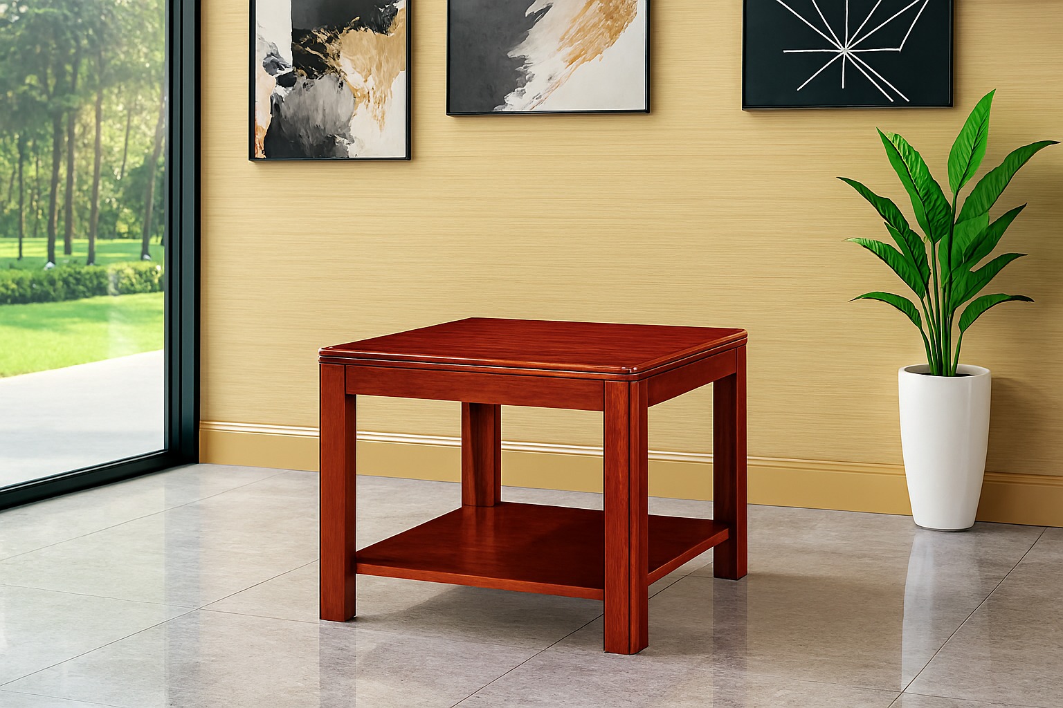 A 0.6m coffee table is a type of furniture that combines a coffee and a stool in one. It is usually square in shape and has a length of 0.6 meters by 0.6 meters. It can be used as a table for placing drinks, snacks ,books, or other items, or as a stool for sitting or resting your feet. The coffee table’s simple and uncluttered top adds a touch of elegance to your space, blending seamlessly with modern and contemporary interior design style. The mahogany finish gives it a premium appearance that stands out .This sleek square coffee table stands on square legs, elevating your room’s aesthetic.
