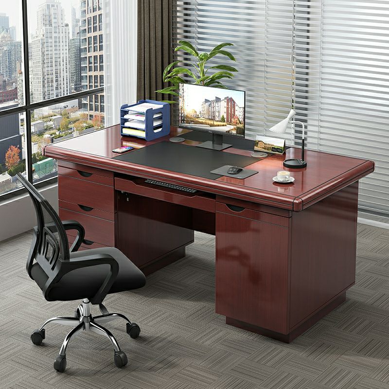 Command attention and elevate your workspace with this meticulously crafted executive desk. Designed for professionals who value both sophistication and utility, its rich dark wood finish and expansive layout create a powerful visual anchor in any office setting. Whether you’re leading boardroom strategy or refining creative concepts, this desk sets the tone for excellence.
