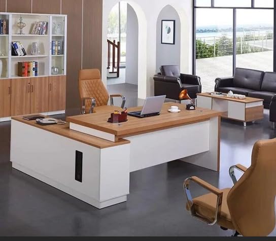 Elevate your workspace with this L-shaped executive desk—a seamless blend of modern sophistication and functional design. Featuring a rich wood finish paired with crisp white accents, it anchors the room with authority and style. The expansive surface offers ample space for multitasking, while the integrated return creates a natural flow for productivity.