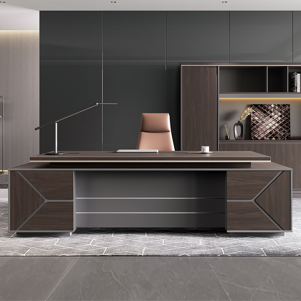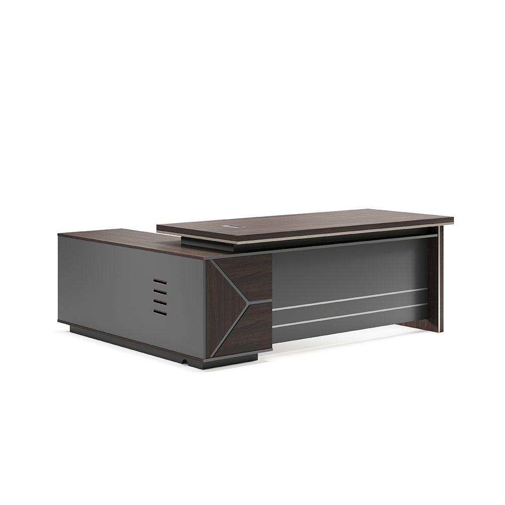 Elevate your workspace with our Executive L-Shaped Desk, a statement piece designed for leaders who value both style and substance. Crafted with a rich dark wood top and sleek gray base, this desk blends modern aesthetics with professional functionality.