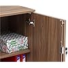 - Vertical metal handles add a subtle industrial edge to the warm wood tones
