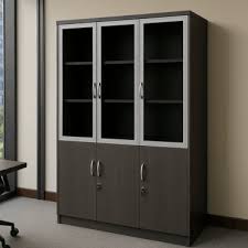 Elevate your workspace with this tall, dual-access office cabinet—where sleek design meets strategic organization. The upper glass-paneled doors showcase neatly arranged binders and documents, offering visibility and quick access, while the lower wooden doors keep essentials discreetly tucked away. Finished with clean metal handles and a refined silhouette, this cabinet anchors any professional setting with quiet authority. Perfect for executive suites, conference rooms, or collaborative hubs, it blends functionality with visual clarity—making your space feel both organized and elevated.