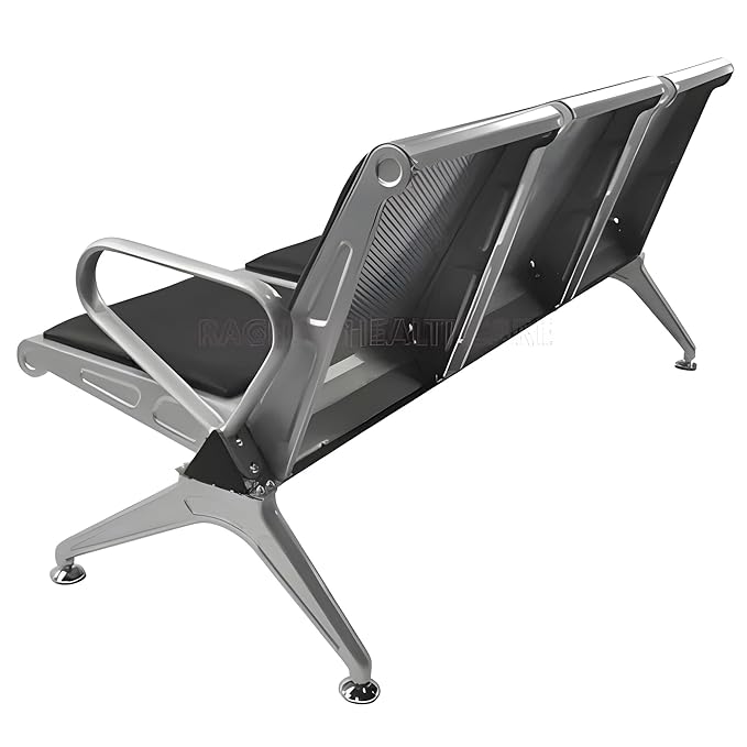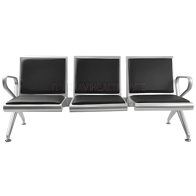 Upgrade your waiting area with the Rainbow Healthcare Three-Seater Bench—engineered for high-traffic environments and styled for modern professionalism. Featuring a sleek stainless steel frame and individual black cushioned seats, this bench offers both comfort and resilience. Each seat is independently padded with a supportive backrest, while the end armrests provide added ease for patients, clients, or guests.