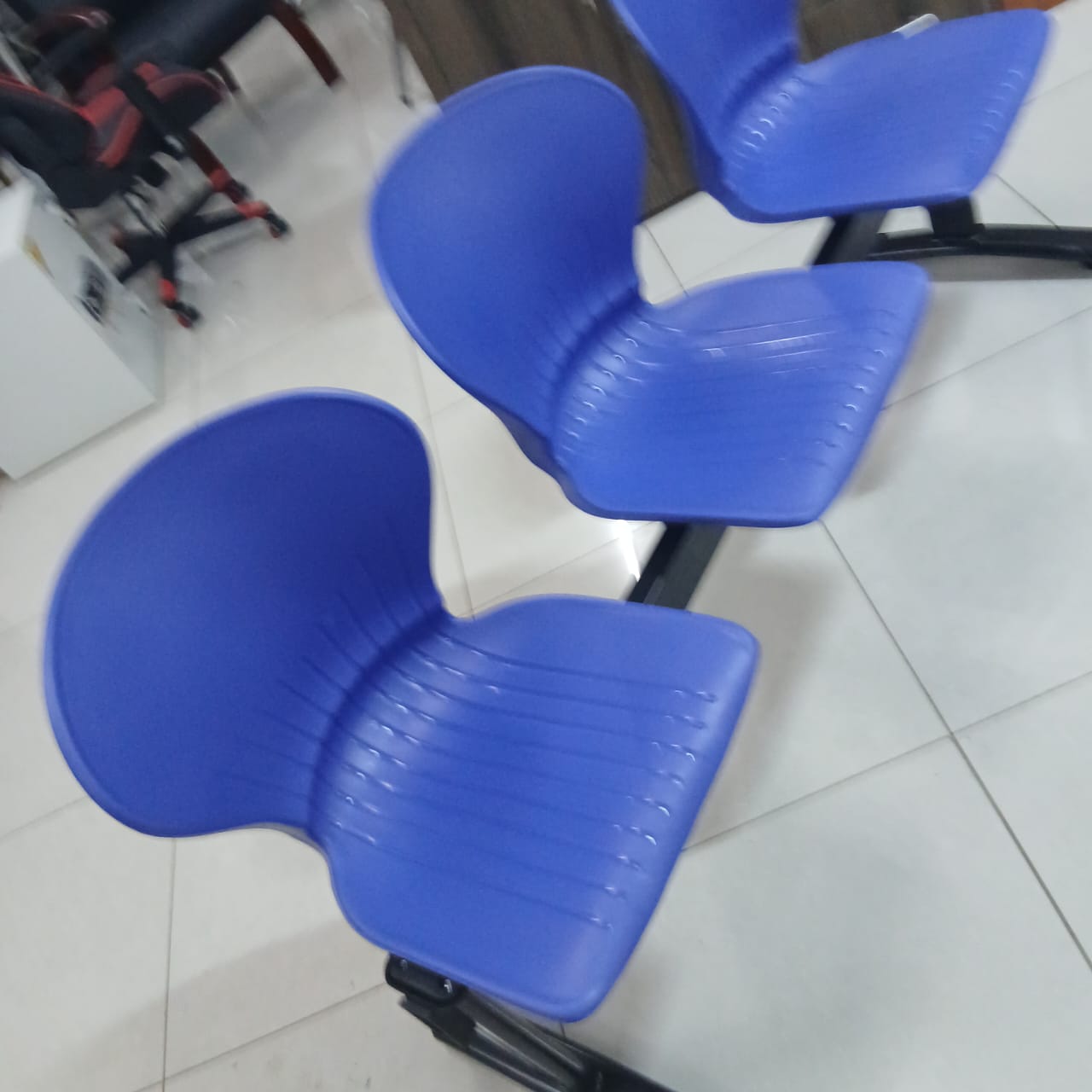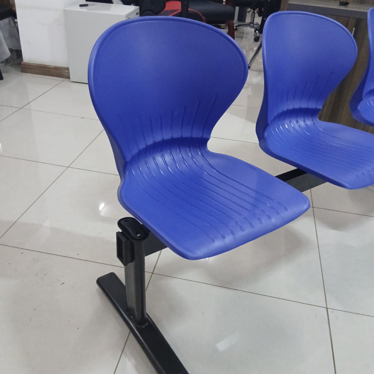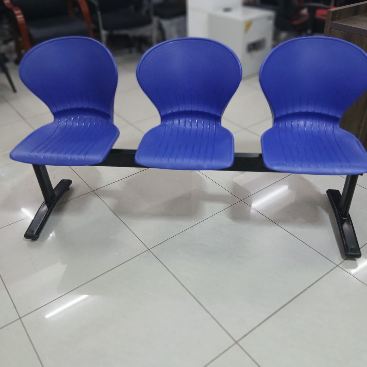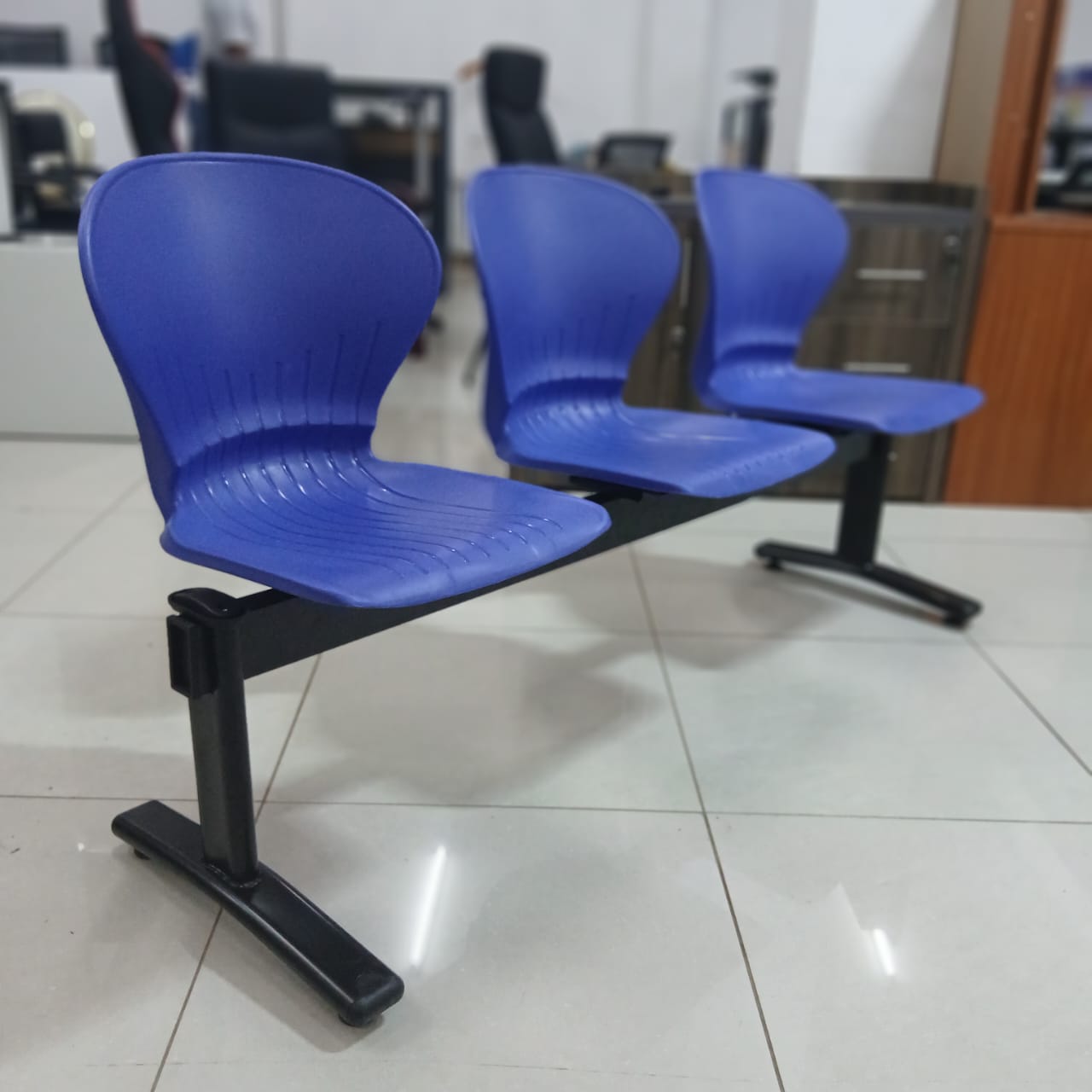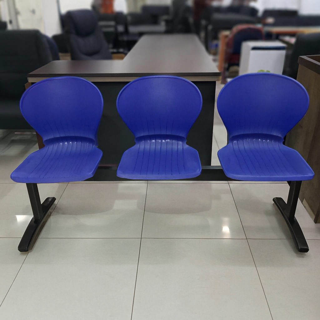 Elevate your waiting area with this streamlined 3-seater bench, designed for high-traffic office environments. Featuring a sturdy black metal frame and ergonomically contoured blue plastic seats, this unit combines durability with modern simplicity. Ideal for reception zones, corridors, or collaborative spaces,