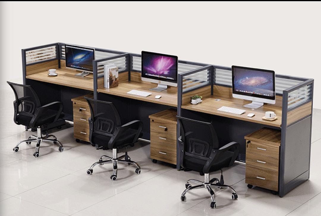 Designed for collaborative yet semi-private workspaces. It is ideal for corporate offices, co -working environment, and open-plan layouts. The workstation until comfortably accommodates three users, each with an individual workspace separated by transparent dividers to ensure a level of privacy without compromising openness.