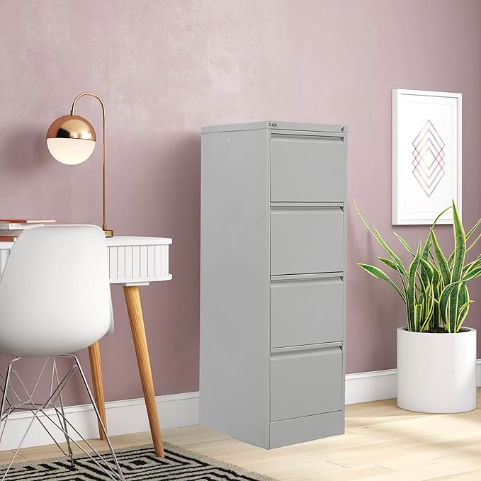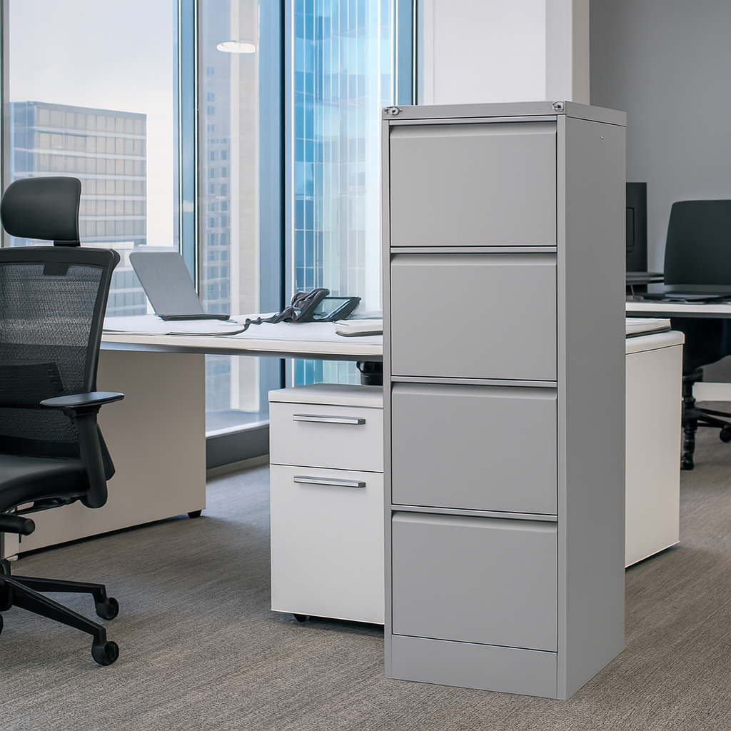 Elevate your office organization with this contemporary four-drawer filing cabinet—designed to blend seamlessly into minimalist, creative, or executive environments. With its tall silhouette and muted gray finish, it offers both style and substance for professionals who value clean lines and clutter-free spaces.