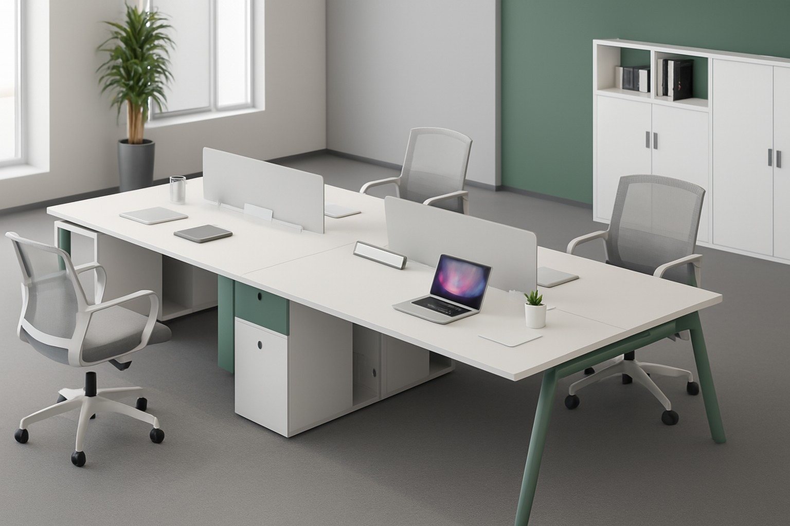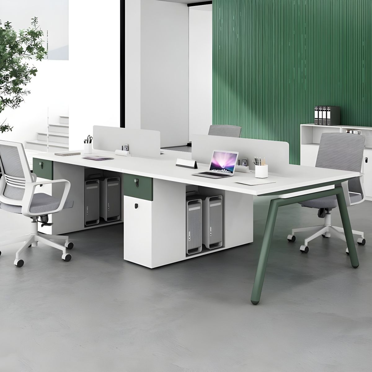 Transform your workspace into a hub of productivity and style with this sleek four-person workstation. Designed for teams that thrive on clarity and cohesion, each desk features a crisp white surface supported by bold green legs—striking the perfect balance between clean minimalism and vibrant energy.