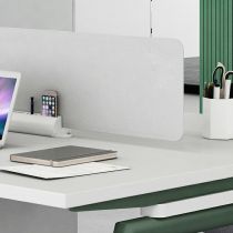 Frosted glass partitions offer privacy without sacrificing openness, while integrated storage compartments keep essentials within reach and clutter out of sight. Whether you’re outfitting a startup studio or refreshing a corporate floor, this setup adapts effortlessly to your brand’s aesthetic.