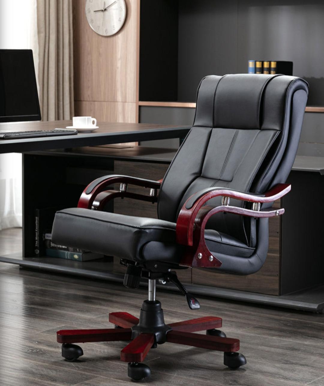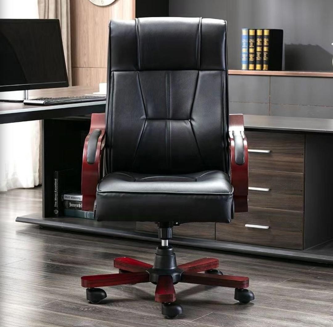 Take your office to the next level with a chair that embodies both authority and comfort. This high back executive chair is the perfect centerpiece for a professional who values a refined, classic look without sacrificing modern support. Designed for those who lead, this chair combines sleek, segmented black upholstery with deep cherry wood accents.