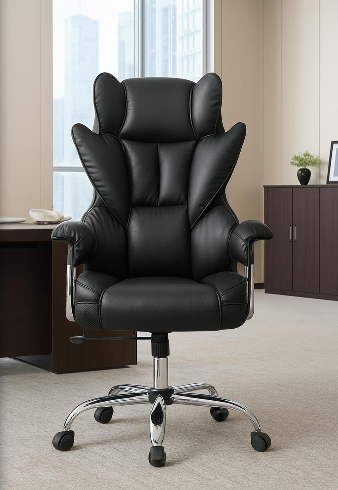 Command your workspace with this high-back ergonomic office chair, designed for professionals who demand both comfort and presence. Upholstered in sleek back and built for long hours, this chair blends executive style with full-body support. Set against a modern office backdrop with city views, this chair is ideal for directors, managers, and professionals who value both aesthetics and performance. Its not just a seat- its a statement.