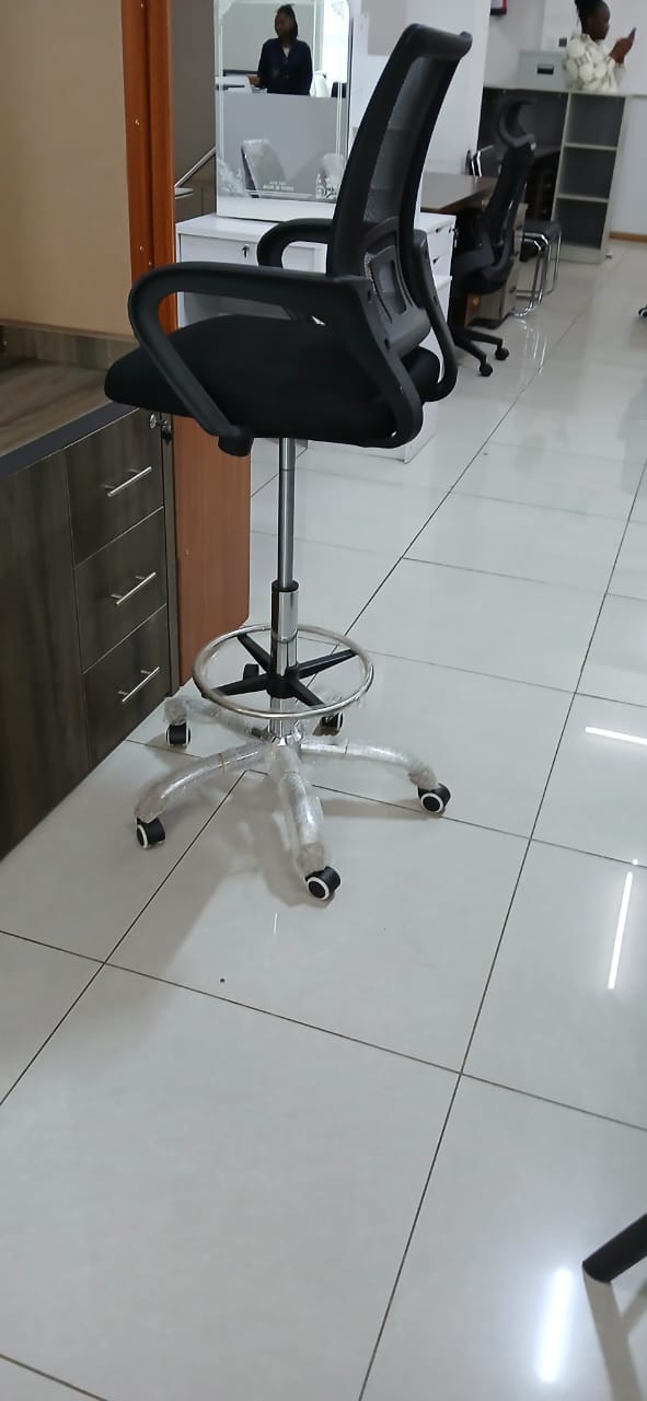 Upgrade your workspace with our Ergonomic Mesh Office Chair, designed for professionals who value breathable support, mobility, and modern styling. Featuring a geometric black mesh back, cushioned seat, and a chrome base with integrated footrest, this chair delivers all-day comfort with a contemporary edge.