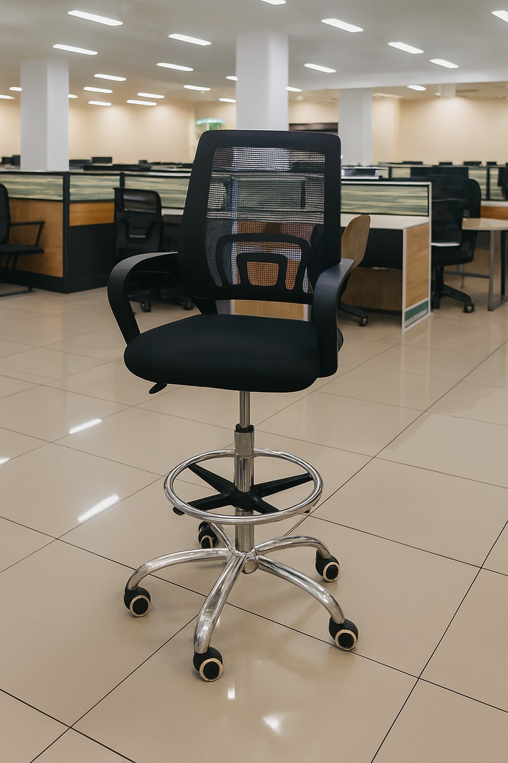 Built-In Footrest: Circular foot ring adds comfort and stability—ideal for drafting stations, standing desks, or elevated work surfaces.