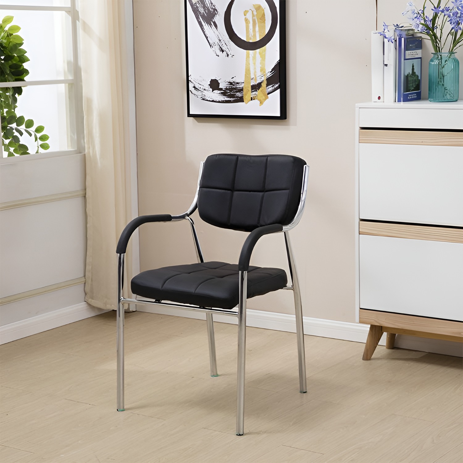 This stylish Catalina office visitors chair will prove to be the perfect addition to your workspace with its modern tufted backrest, soft and exceedingly comfortable cushioned seat and shiny stainless steel legs. Its best suited for indoors usage, and it comes at a price. Extra comfort cushion and smooth plastic armrest to ensure comfortable stylish experience .The polished finish is sure to make your every client meeting a success. Multipurpose leather chair can be used for meeting, conference etc.