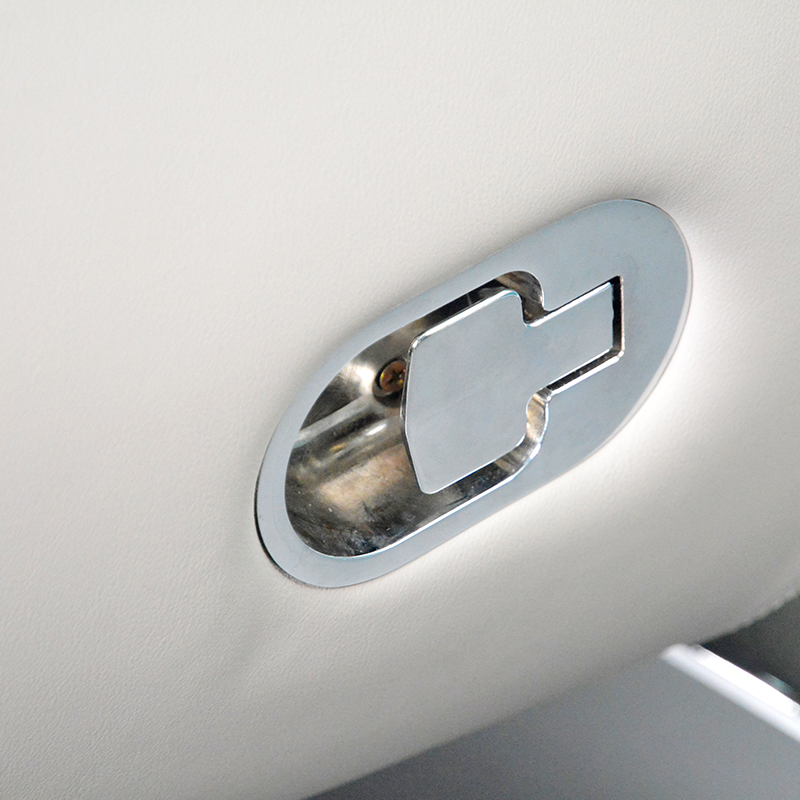 Chrome-accented armrests with rich brown detailing for added elegance