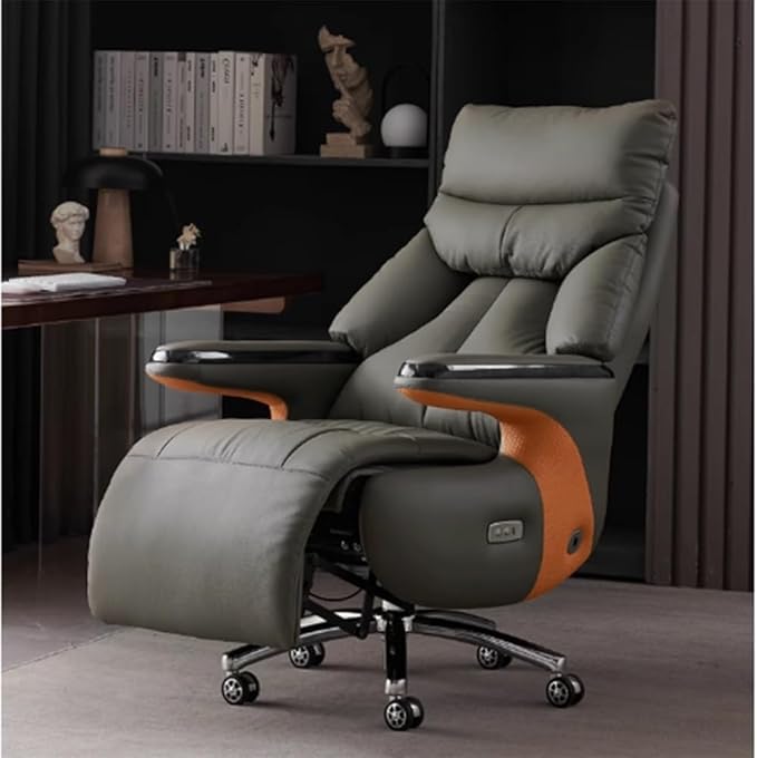 Designed for decision-makers, this beige leather executive chair blends sophistication with ergonomic excellence. Featuring a high backrest, plush cushioning, and sleek metallic arm accents, it offers both visual prestige and all-day support. The subtle brown leather detailing adds warmth, while the five-wheel base ensures seamless mobility across any office floor.