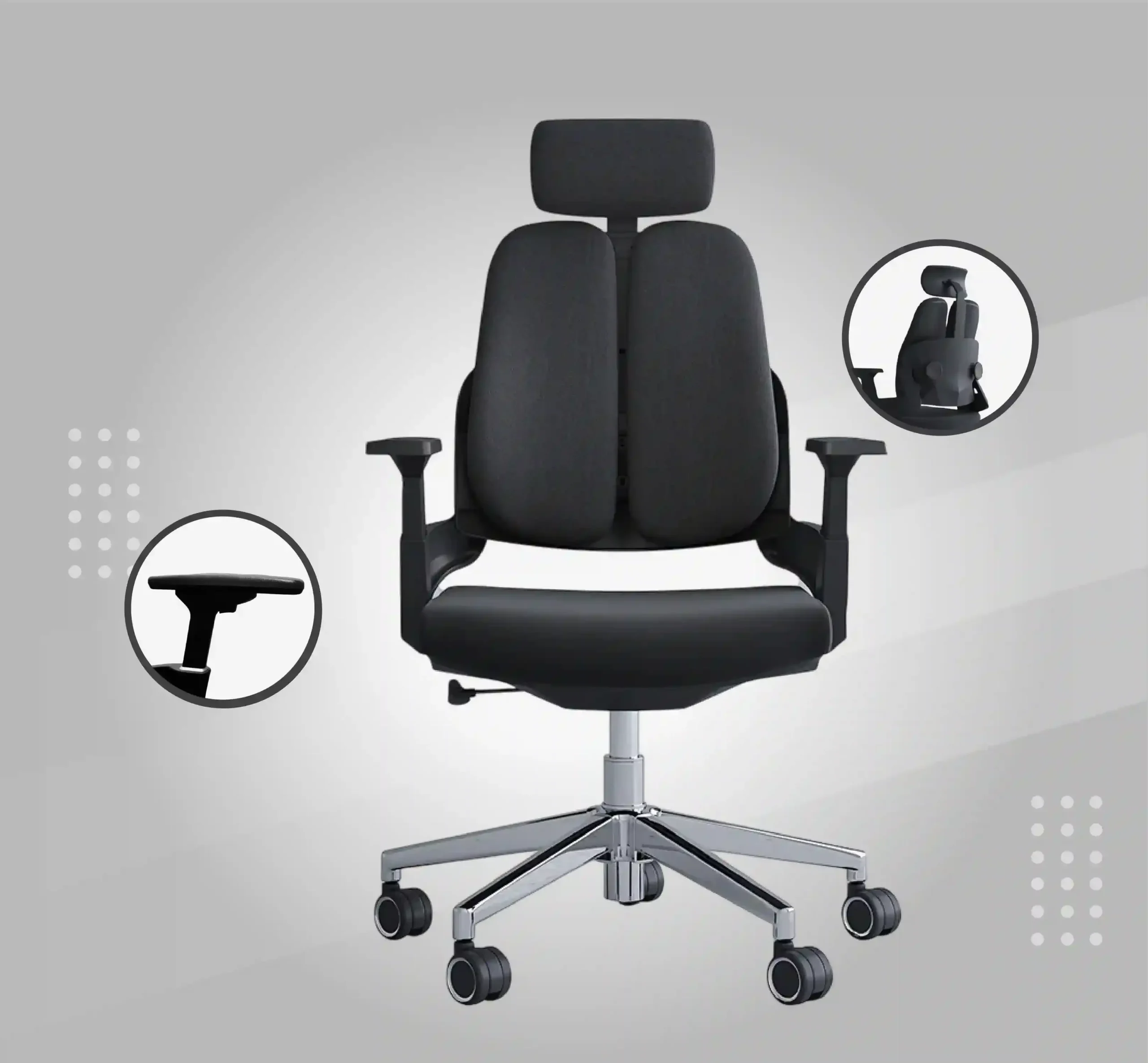 Elevate your workspace with the Split-Back Ergonomic Office Chair—where innovation meets comfort. Designed for professionals who demand both style and support, this chair features a striking split-back silhouette, engineered for optimal lumbar alignment and dynamic posture control. The sleek black finish and chrome base exude executive elegance, while the adjustable components ensure a personalized seating experience for long hours of productivity.