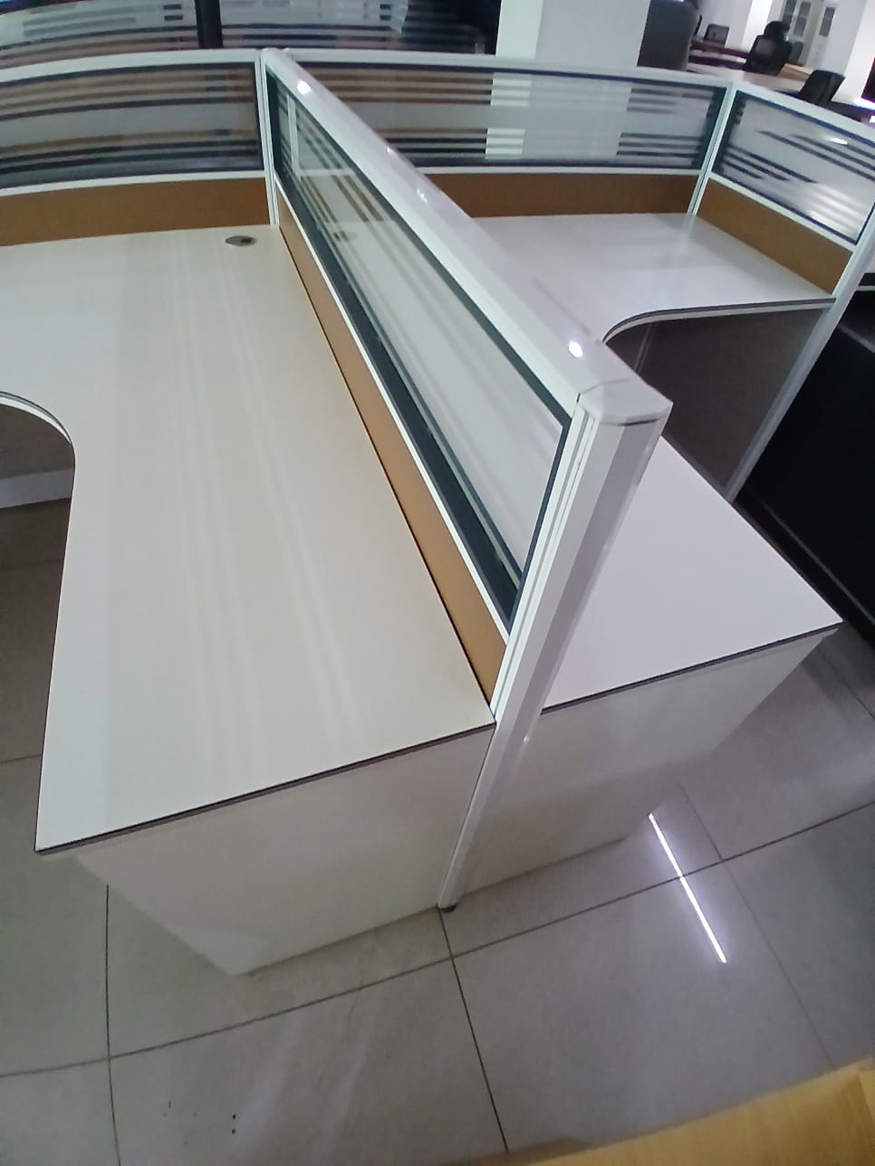 Maximize productivity and space efficiency with our Dual-Sided Workstation Desk, designed for modern offices that value both privacy and teamwork. Featuring two L-shaped desks in a mirrored configuration, this setup creates a balanced environment for focused work and easy interaction.