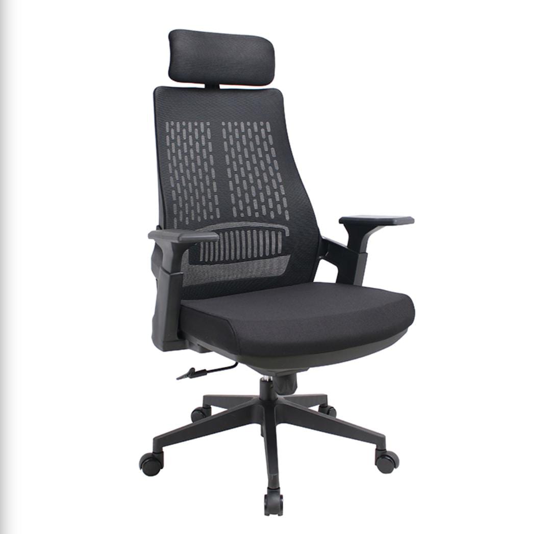 Experience all-day comfort and commanding style with the ergo elite High-back office chair. Engineered for performance, this chair features a breathable mesh back, cushioned seat, and adjustable headrest to support long hours of focused work. The sleek five-wheel base ensures smooth mobility, while the modern silhouette elevates any office environment. Command your day with a chair that works as hard as you do.