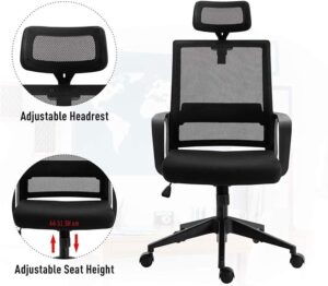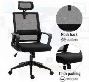- Dynamic Support: Mesh backrest promotes airflow while the adjustable headrest and cushioned seat cradle your posture through long workdays.