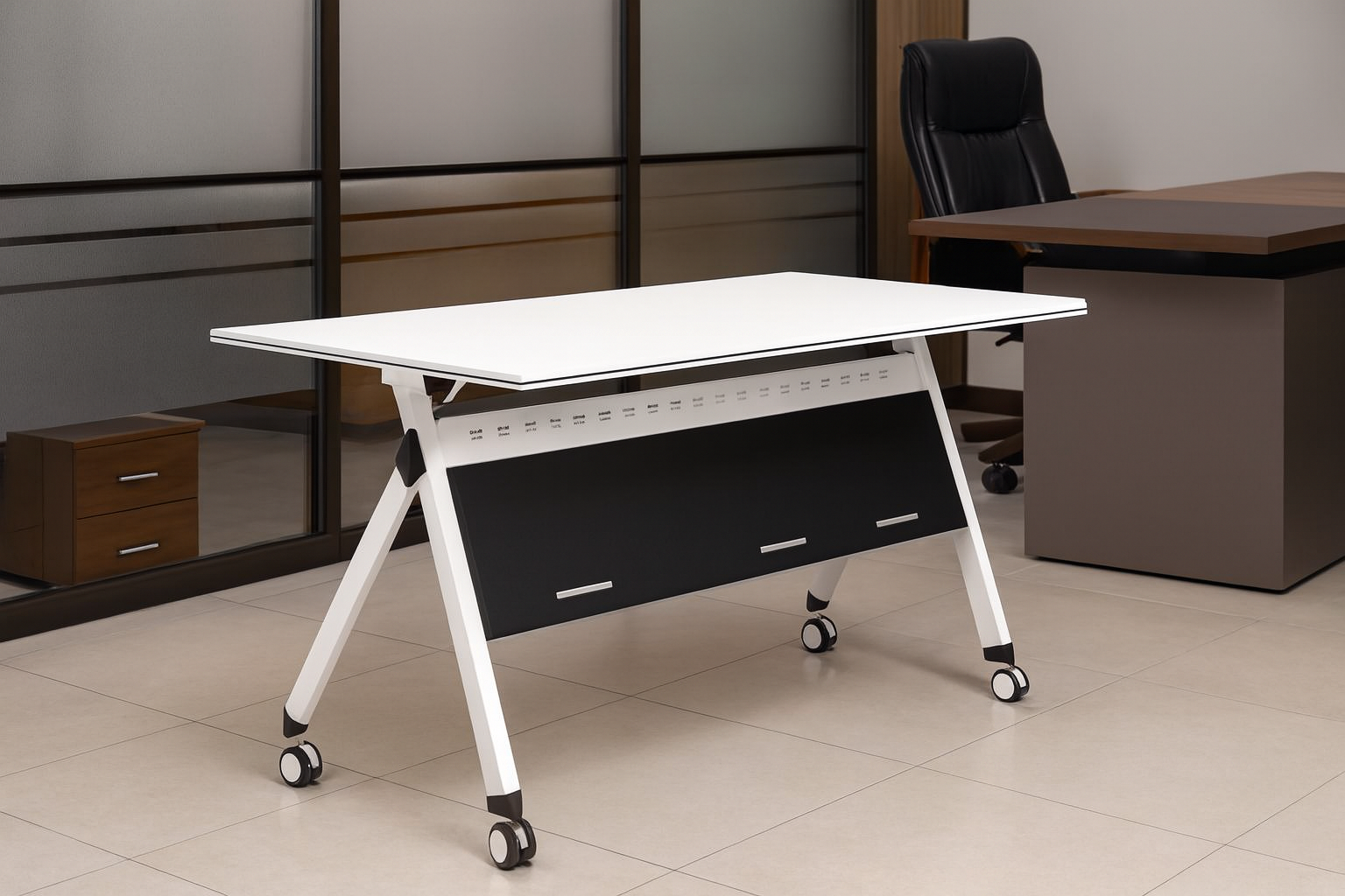 Optimize your office layout with these sleek flip-top training tables, designed for dynamic environments that demand adaptability. Featuring a clean white surface, sturdy gray legs, and smooth-rolling casters with locking mechanisms, these tables nest effortlessly when tilted—making them ideal for compact storage and quick reconfiguration.