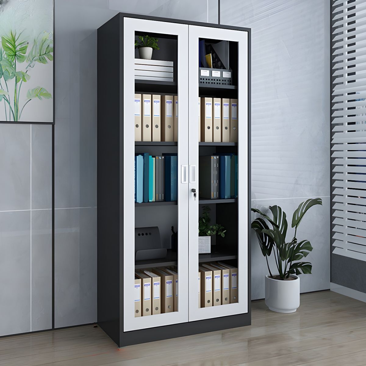 Full Glass Metallic Office Filing Cabinet