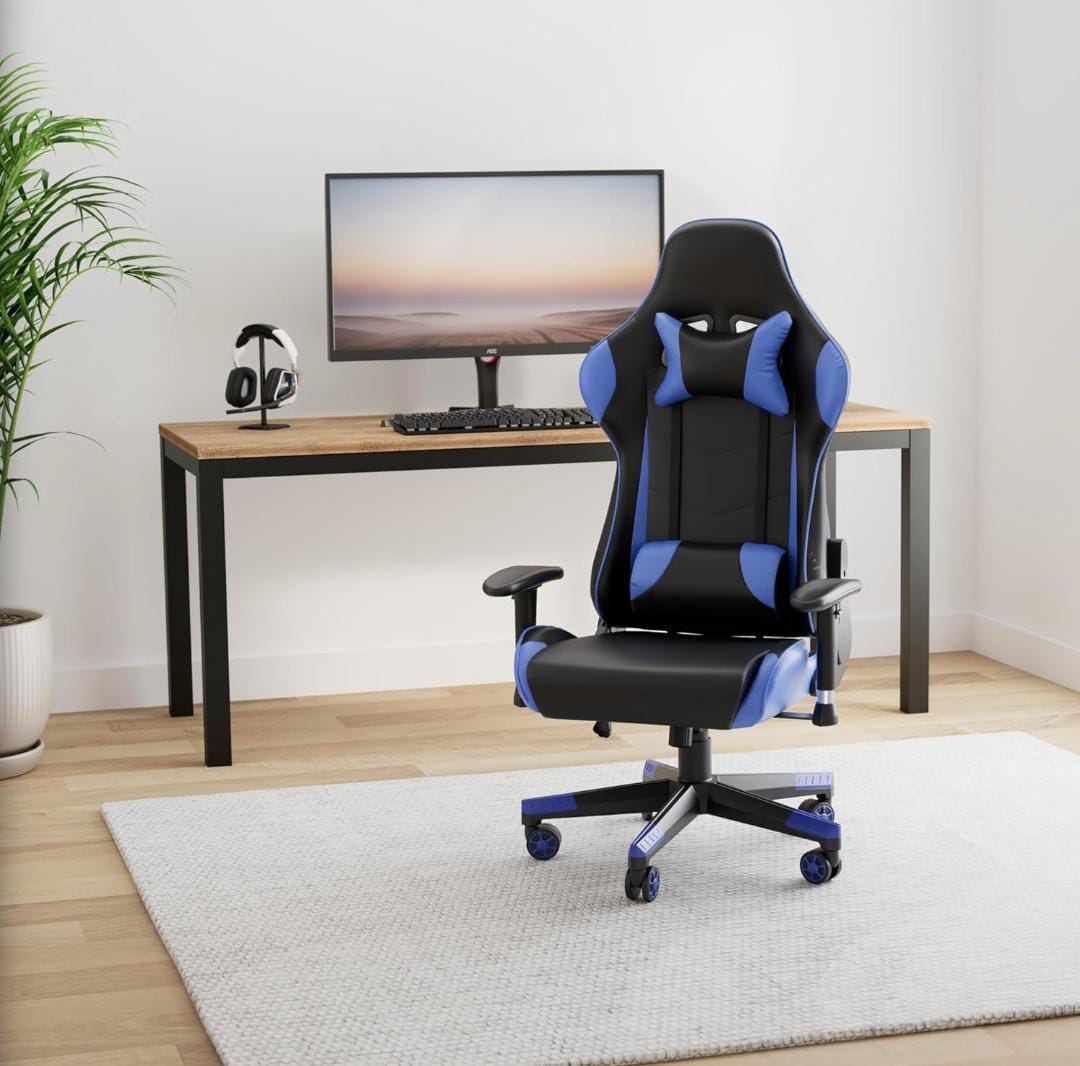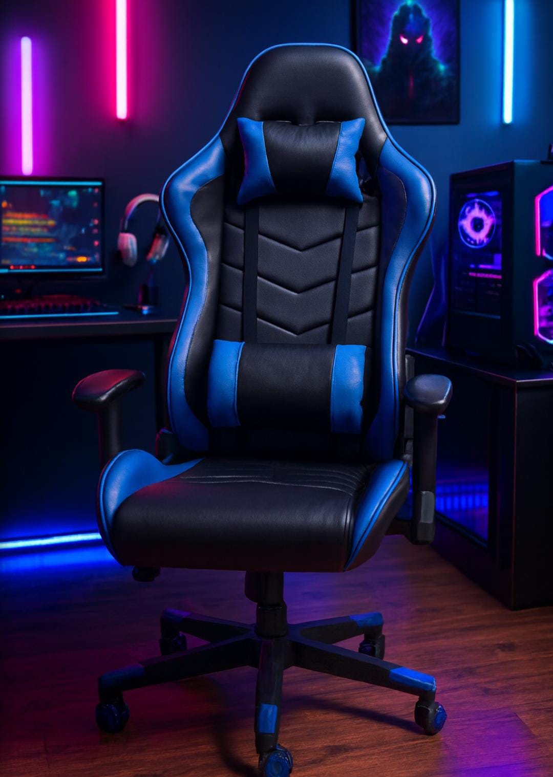 Dominate your game and elevate your setup with this high-performance black and blue ergonomic gaming chair-built for comfort, style, and long hours of immersive play. Whether you’re a competitive gamer, content creator, or tech -savvy professional , this chair delivers the edge you need. Pair it with RGB lighting, a sleek desk, and your favorite gear to create a setup that’s as powerful as your gameplay. ideal for homes studios, gaming lounge, and streaming environments.