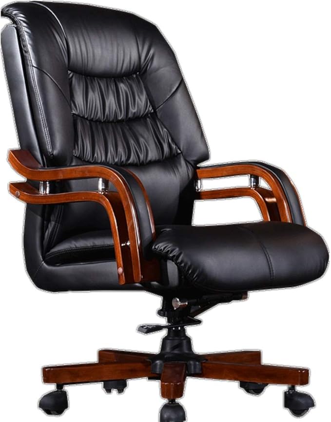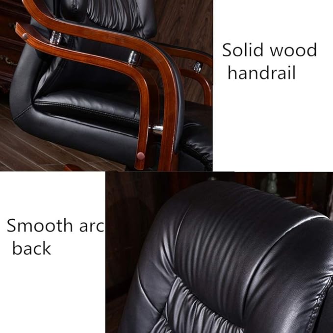 - Luxurious Materials: Upholstered in rich black leather with polished wooden armrests and base for timeless appeal