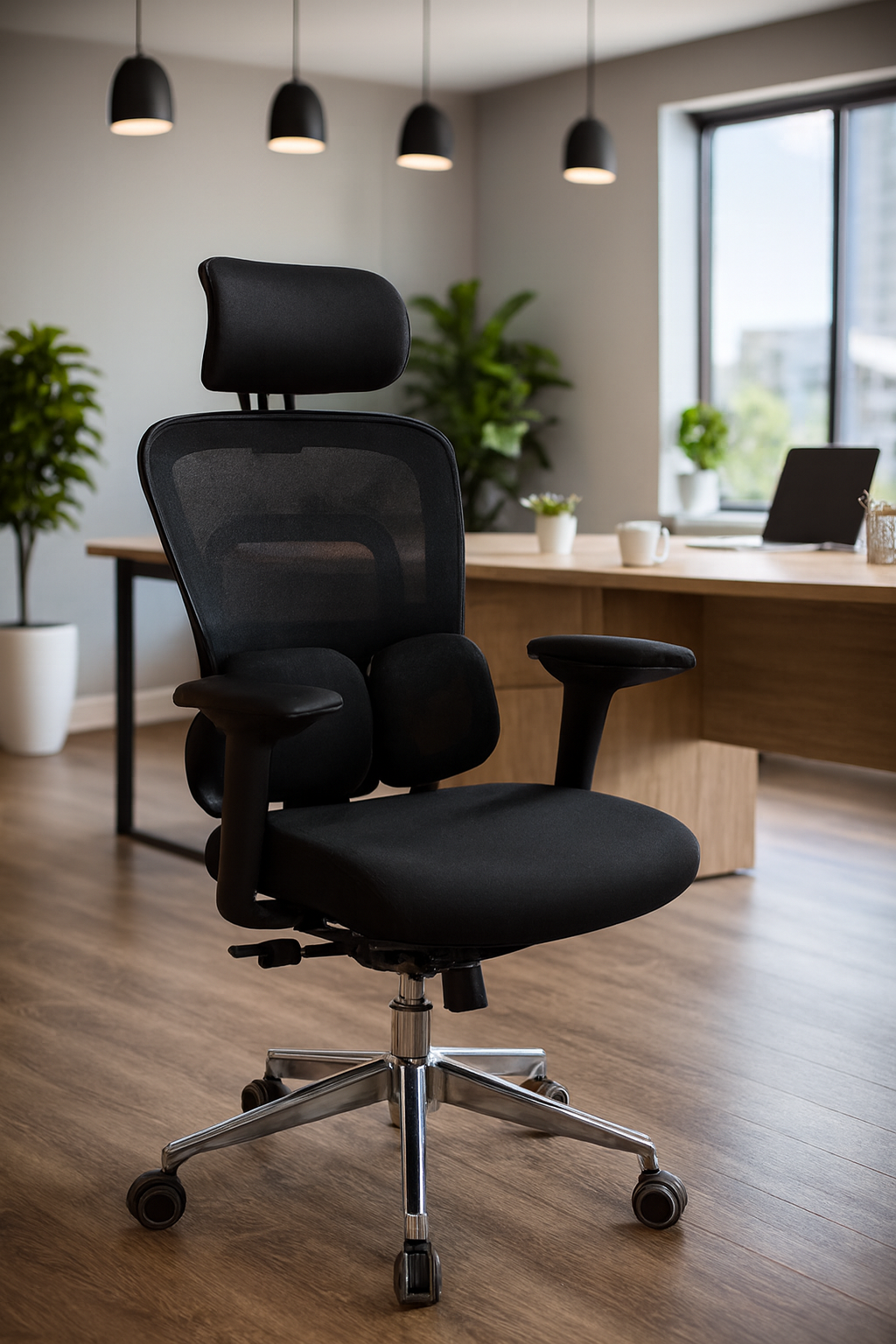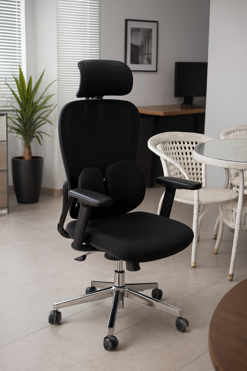 Experience all-day comfort and executive support with our Advanced Mesh Ergonomic Chair, designed for professionals who prioritize posture, productivity, and style. Featuring a breathable mesh back, adjustable armrests, lumbar support pads, and a headrest, this chair adapts to your body and your workflow.