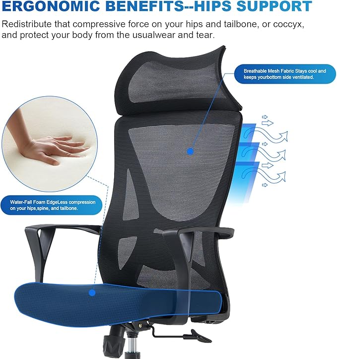 - Breathable Mesh Backrest: Promotes airflow and supports spinal alignment for all-day comfort.
