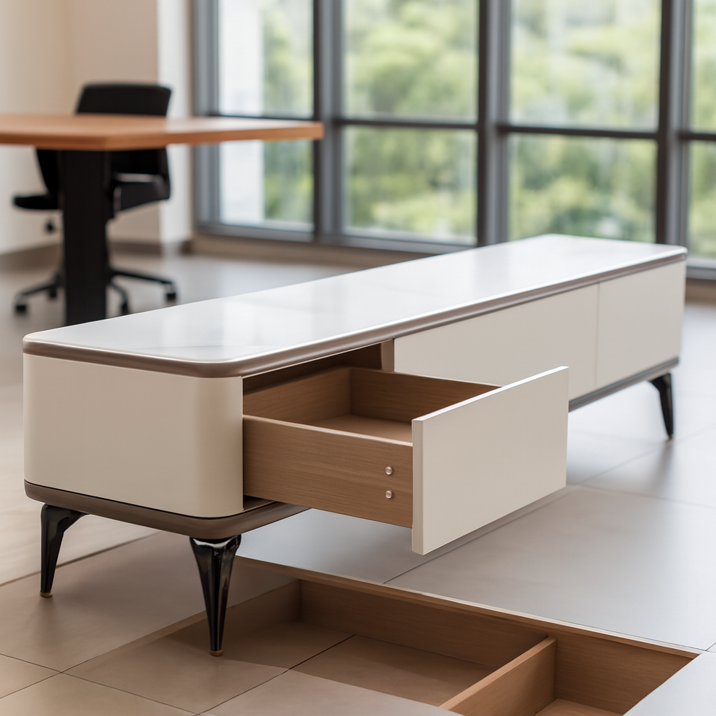 Crafted from high-quality materials such as robust wood or metal components, our executive desk is built to withstand the demands of daily use in a professional setting. Its durable construction ensures longevity, making it a reliable investment for your workspace.