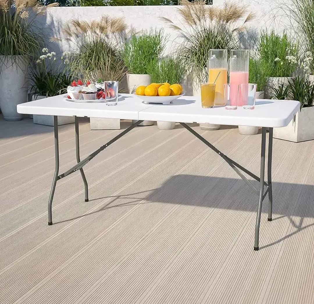 Practical, portable, and durable this 1.5m foldable table is perfect for both indoor and outdoor use. Ideal for events, catering, office setups, or home gathering. Easy to fold, store and transport.
